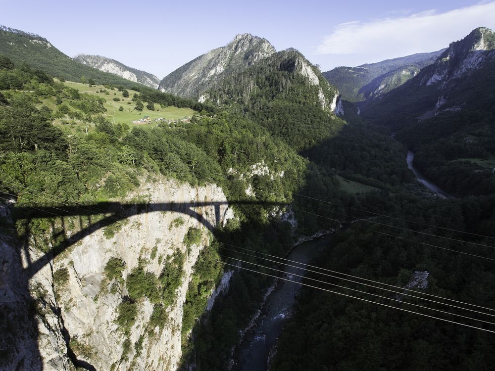 View of Đurđevića Tara Bridge in Montenegro.