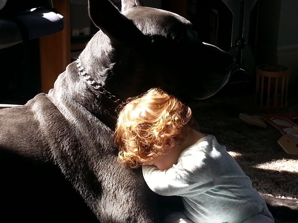 Oly, the dog, was my first baby. He is my heart. Oly was present when my daughter Violet was born since he refused to leave my side. Now Violet is walking and loves to follow Oly around the house. They share a quiet affection for each other. You'll rarely find both sitting still which is why this picture is so special.
