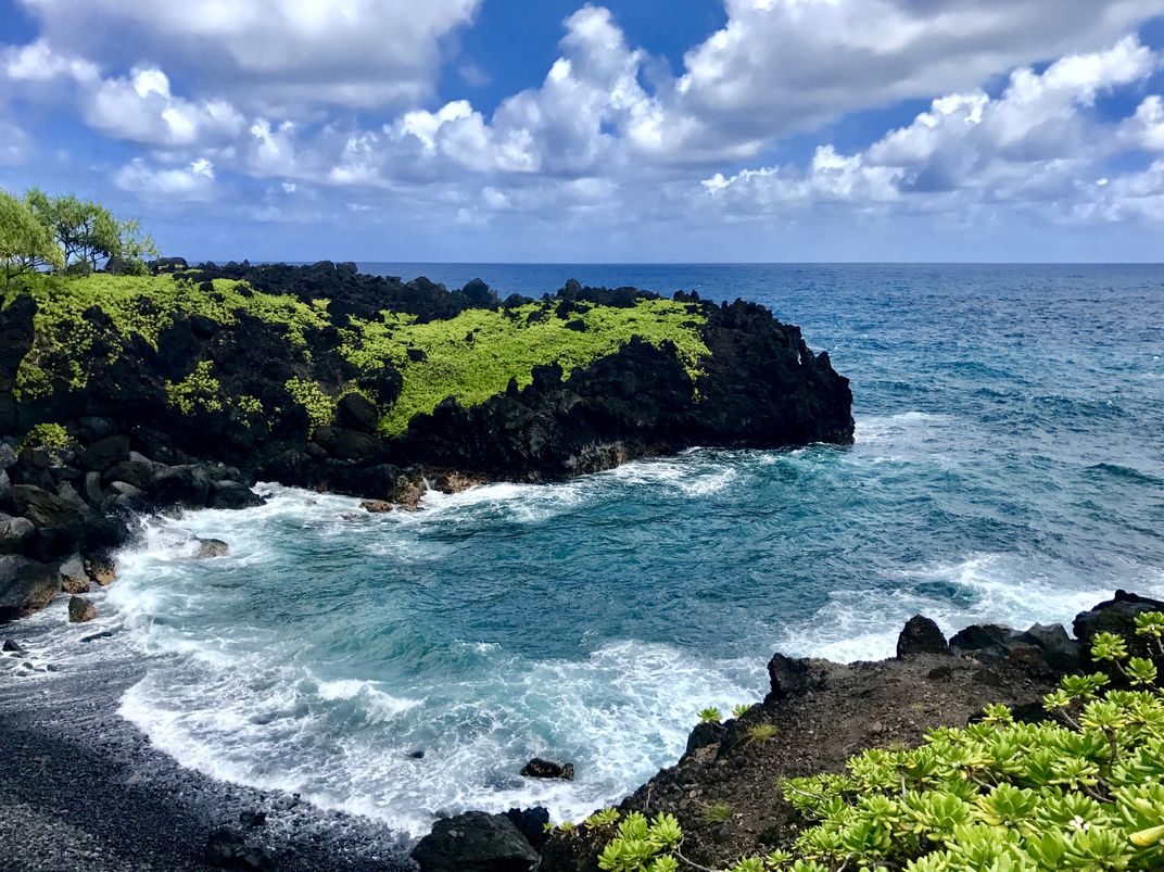 Exploring the Road to Hana in beautiful Maui. One of the many excursions along the way is Wai’anapanapa State Park, where the black sand beaches accentuate the sapphire blue water and lucious green scenery. The sound of the waves crashing in is truly unforgettable.