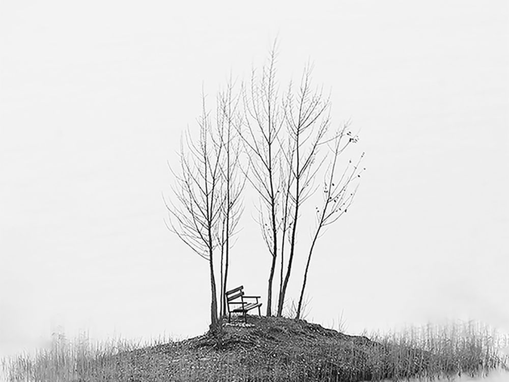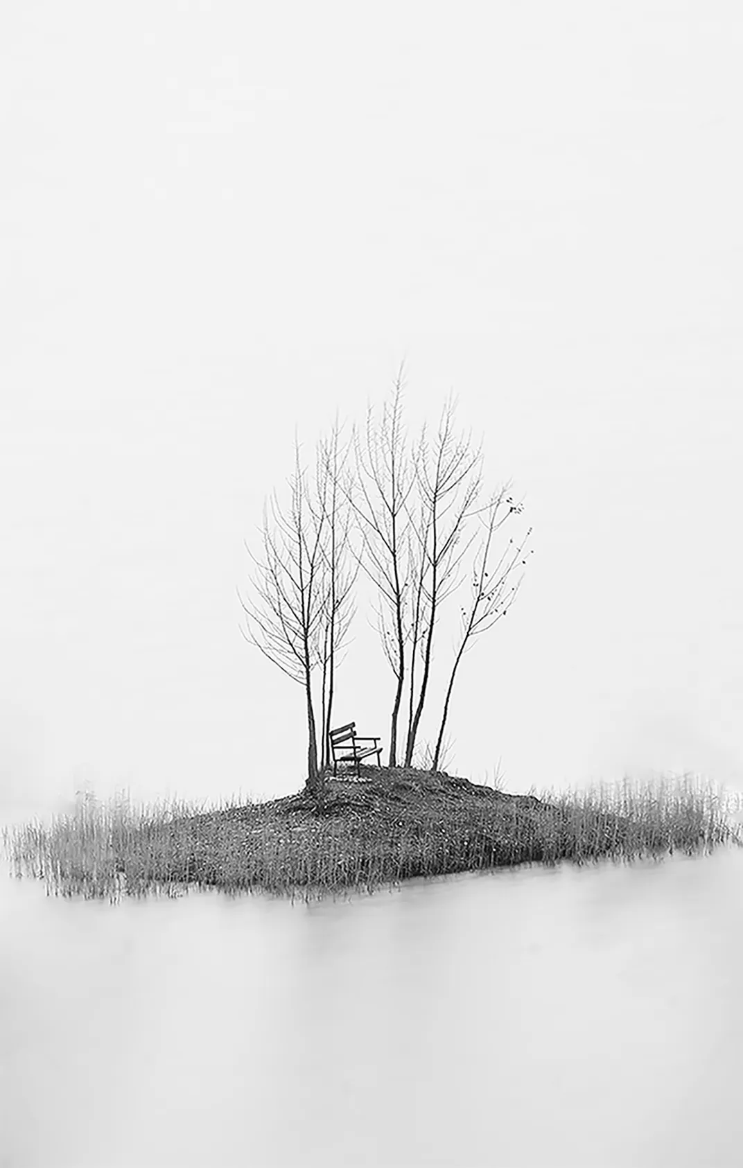 Seeing the bench surrounded by water, I saw in my mind exactly what I wanted to capture, a minimalist seen from above.