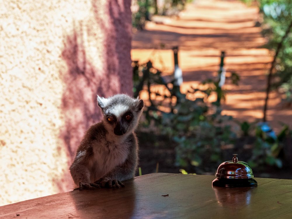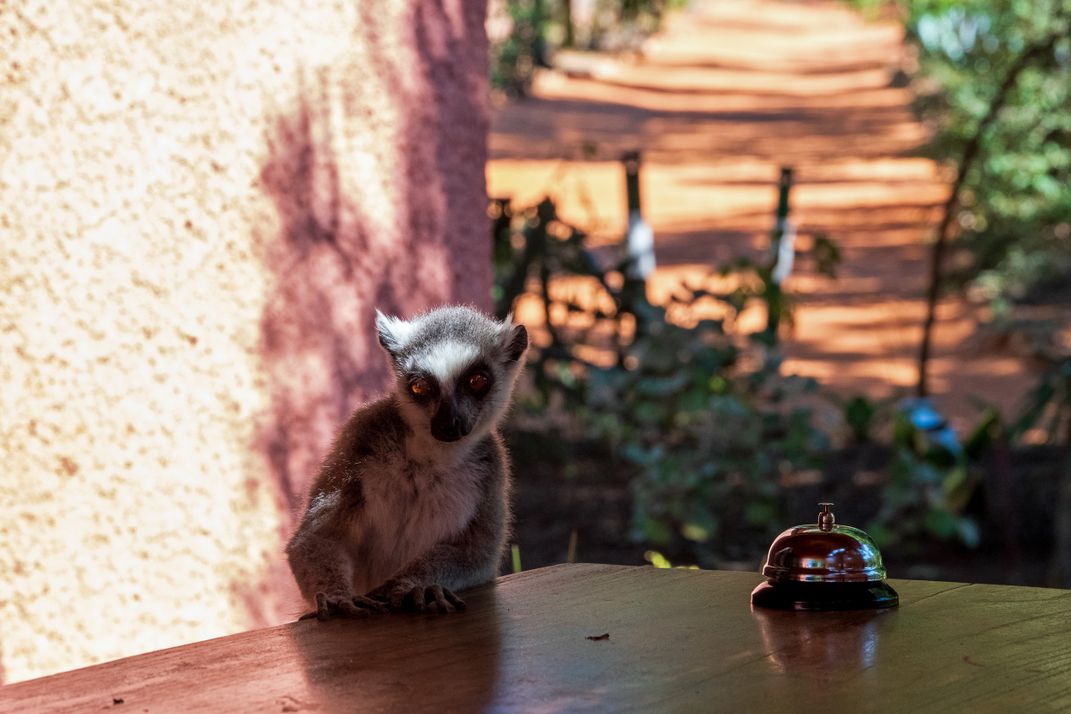 A Ring-tailed lemur at a table at Berenty lodge in the eponymous reserve in southern Madagascar.