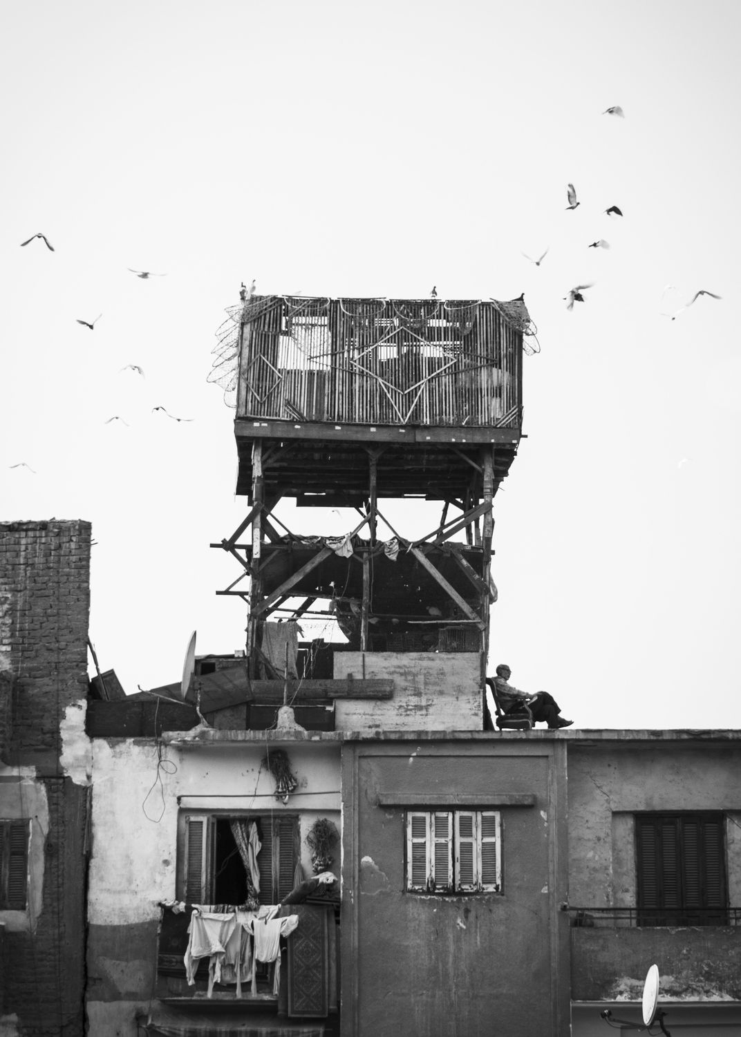 In the heart of Al-Darb Al-Ahmar, Cairo, a man sits quietly on his rooftop at sunset, waiting for the cannon that signals the end of the fast. Above him, pigeons circle their wooden loft — a peaceful moment that reflects the rhythm of Ramadan life in old Cairo.