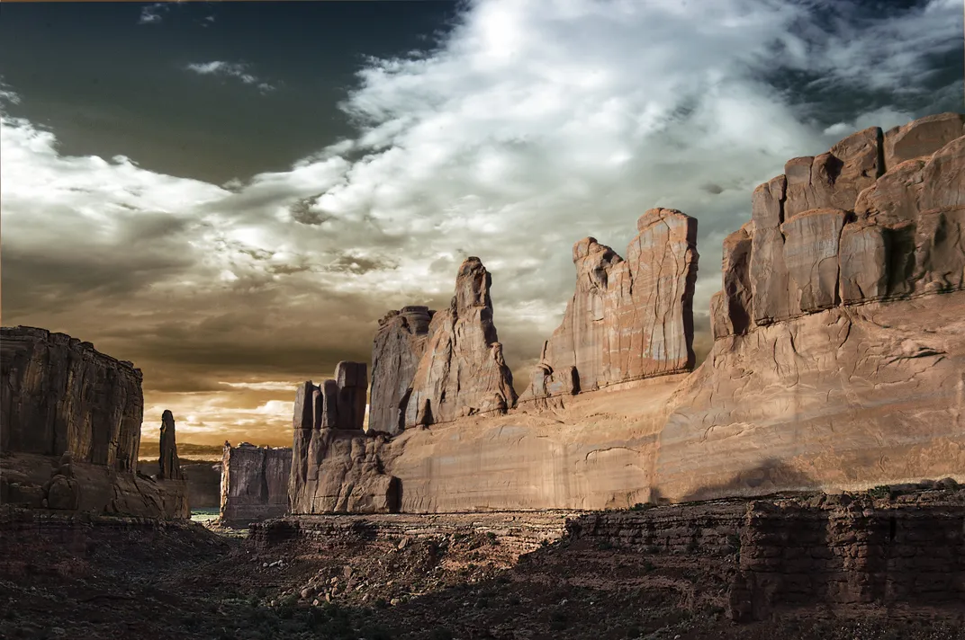 After a disappointingly drizzly day in Arches National park, Utah, I reluctantly packed up my gear and headed out of the park. It was the last hour of daylight, and the sun suddenly beamed through the now-thinning clouds. The last significant formation before the park exit was Wall Street. And I thought, maybe...