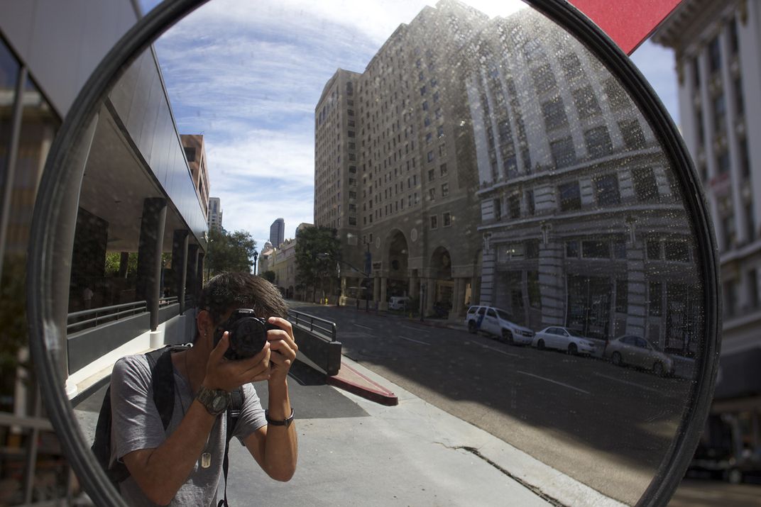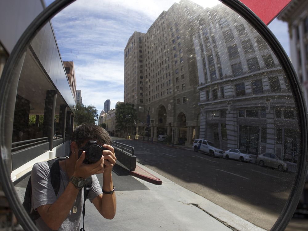 Wandered Downtown, San Diego and saw this traffic mirror and decided to take a not so typical selfie.