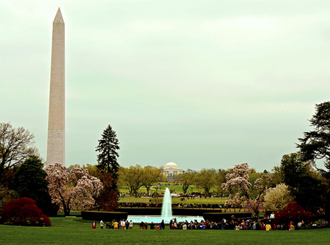 Washington and Lincoln Monuments as seen from the grounds of the White House on a beautiful spring day