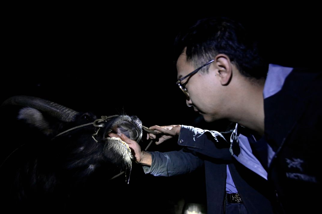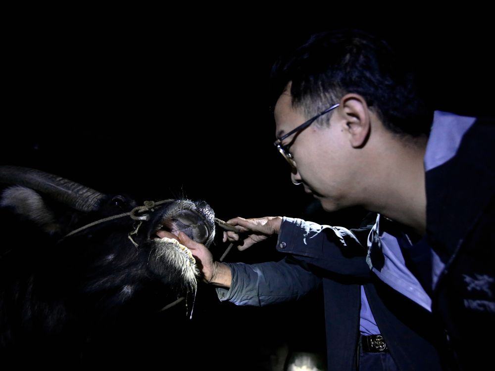 Watching Cattle and Inspecting Their Teeth Photographed on November 13, 2025, at the market in Niujiao Village, Yuanyang County, Yunnan Province, China. There is a livestock market in the area where trading occurs every four days, and its most notable feature is that cattle transactions start around 4 a.m. Why does trading begin before dawn? In these areas, daylight usually starts around 7 a.m., and only after sunrise do the market-goers gradually arrive. Beef vendors buy the cattle, slaughter them, and then sell fresh meat at the market, allowing the crowd to purchase fresh beef. The region is home to the world-famous 300,000-acre Hani Terraced Fields, which have been recognized as a UNESCO Intangible Cultural Heritage and still maintain traditional farming practices. As a result, many farmers come here to buy draft oxen. Buyers typically ask sellers to open the cattle's mouths to check their teeth, as the main methods for judging a cow's age and health are: 1) the growth condition of the milk teeth; 2) the replacement of milk teeth with permanent teeth; 3) the wear of permanent teeth. Using this information, both parties begin negotiating the price, and a transaction is completed once an agreement is reached.