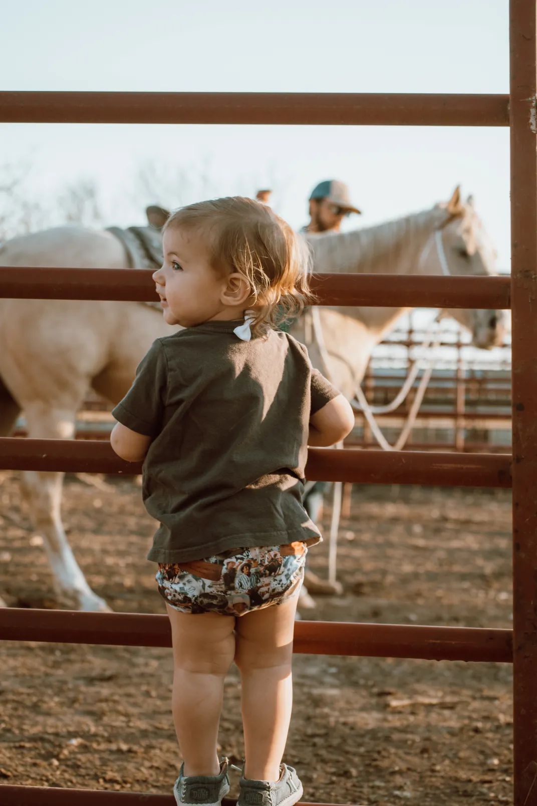 This is a picture of my daughter watching my husband train a filly that we have.