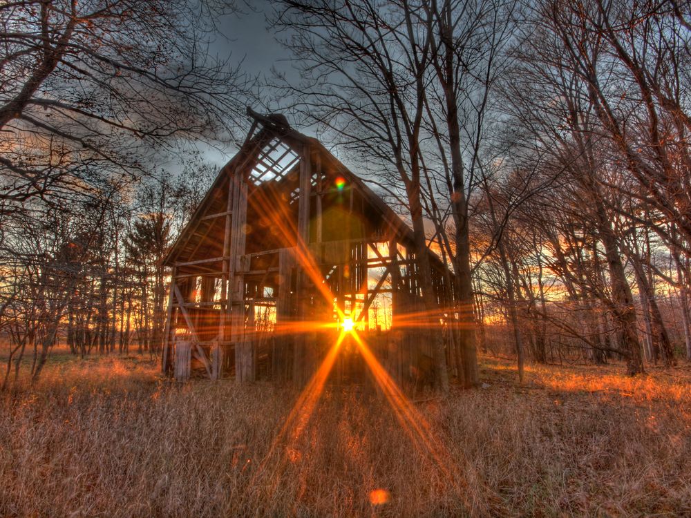 Watching the beautiful sunset through a decaying barn in Wellston, Michigan.