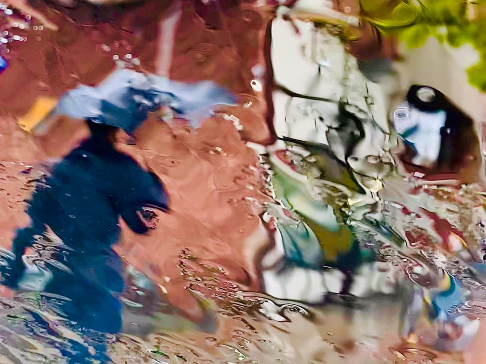 Waiting in my rental car for the rain to let up, water flowed over the windshield, beautifully blending colors and distorting shapes. I found beauty in the moment and a welcome distraction on this cross-country trip to visit my brother in New Haven, CT in his final months.
