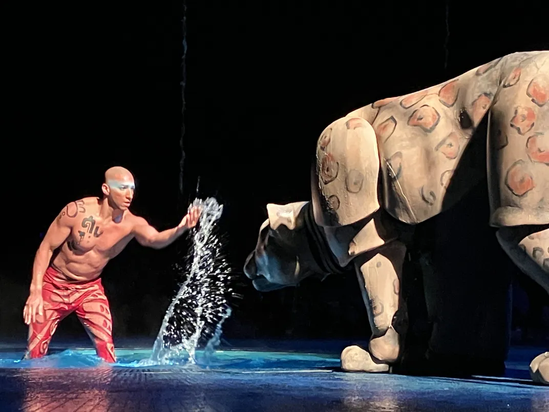 The beautiful choreography at Cirque du Soleil involved pageantry and water. This talented aerialist shone during his act!