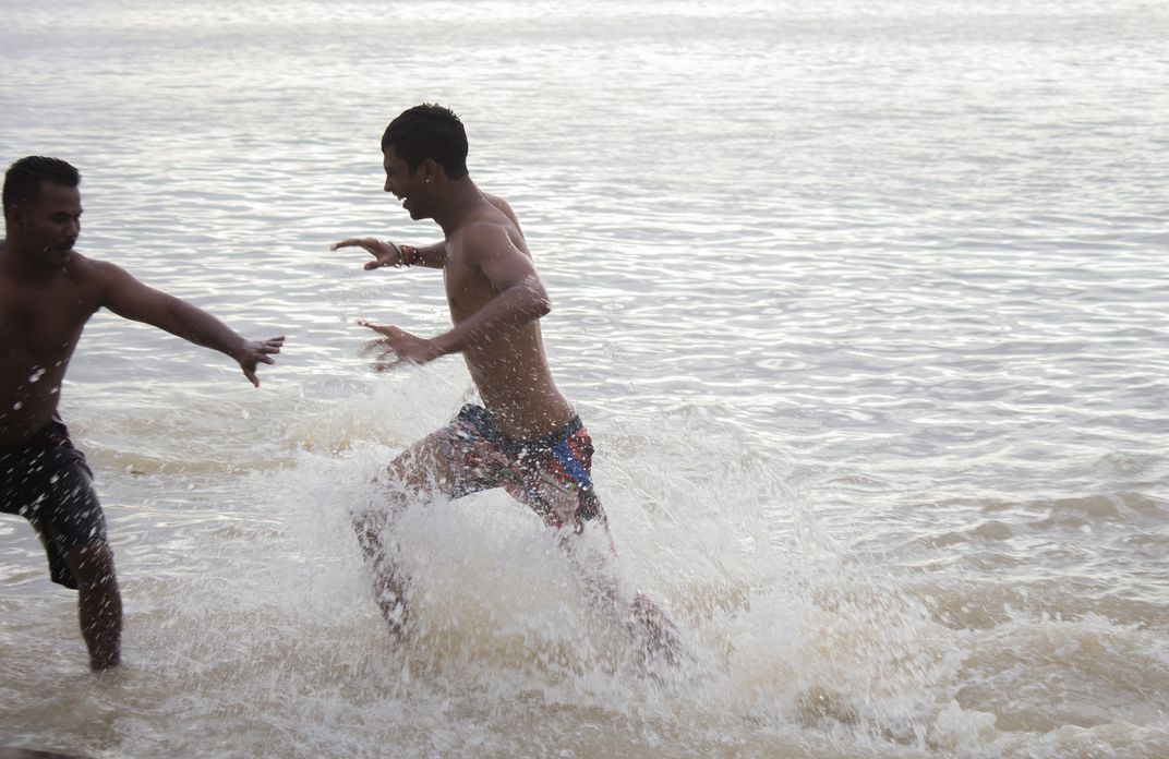 Water is Life.... You can find the life of Riverside people of India.... They Play in River....River is Mother for them....