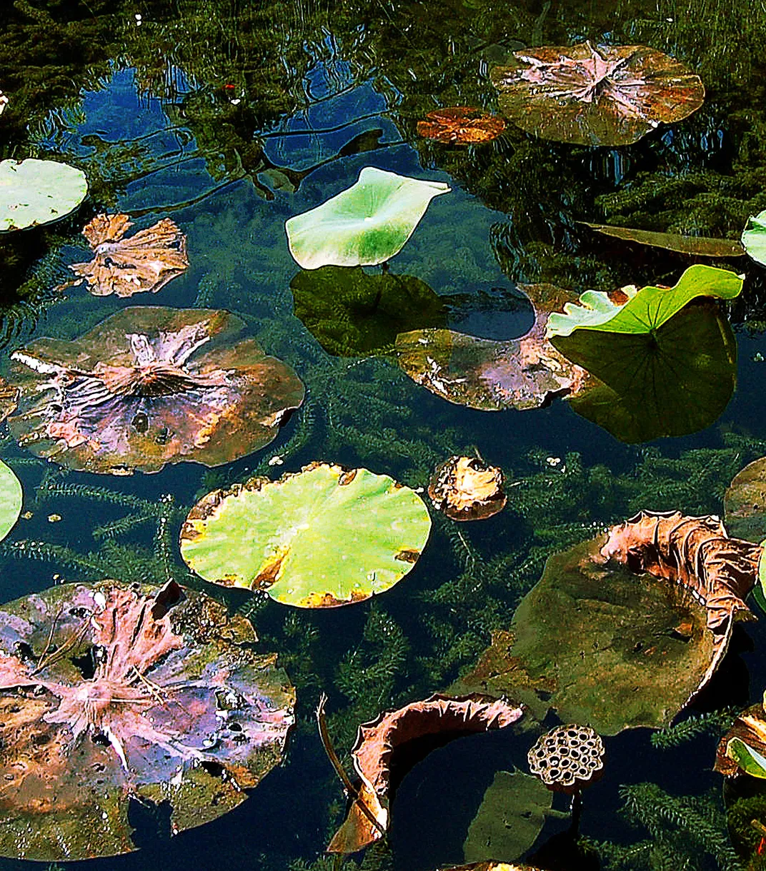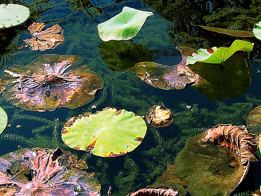 Water lilies in a pond at the Norfolk Botanical Gardens, Norfolk, Va.