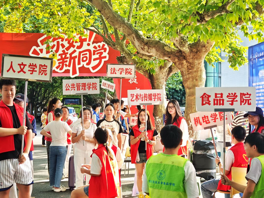 On September 9, 2025, in Ya'an City, Sichuan Province, China, the campus of Sichuan Agricultural University was bustling with people. Volunteers held signs of various colleges to guide the 2025 freshmen to register and enroll.