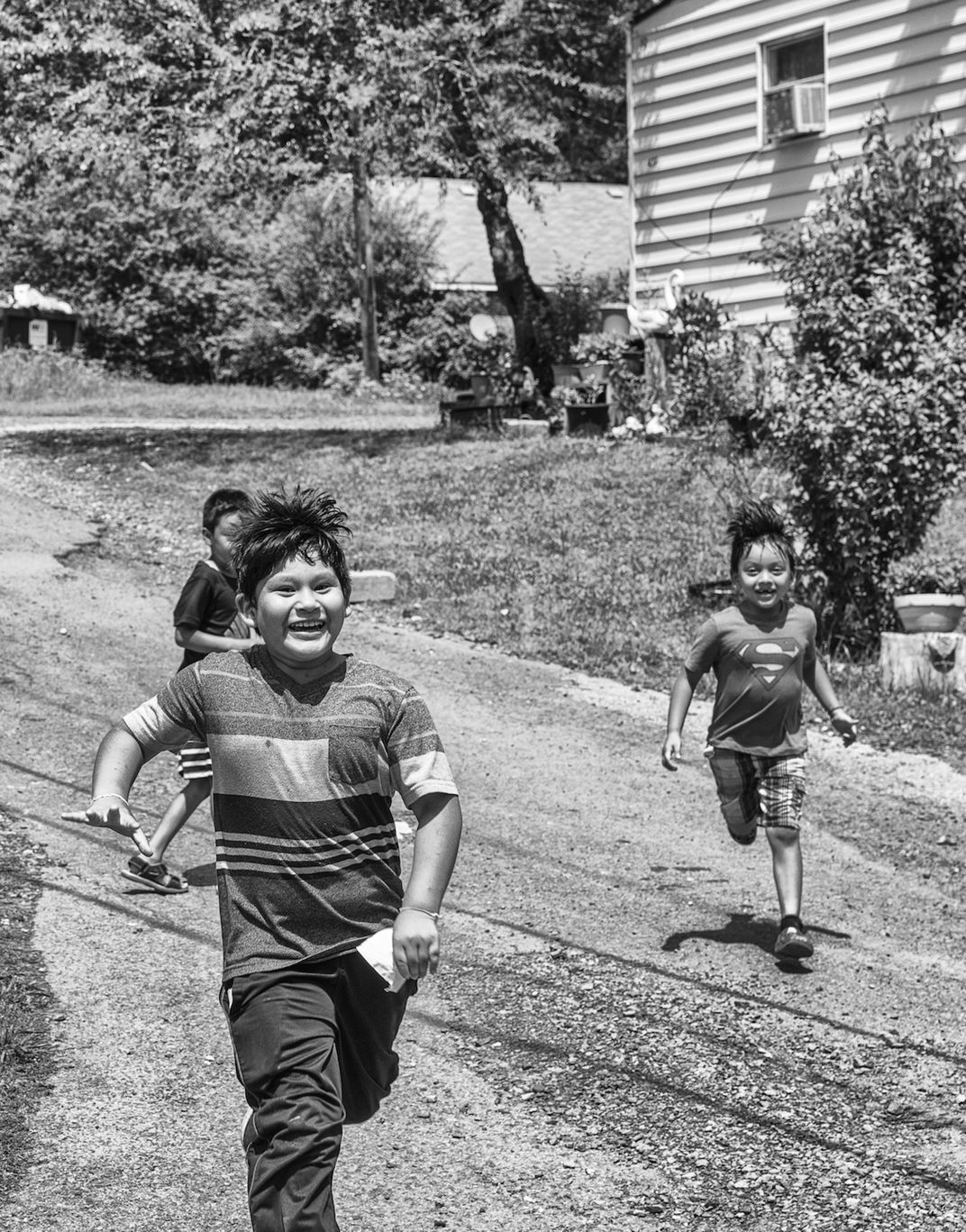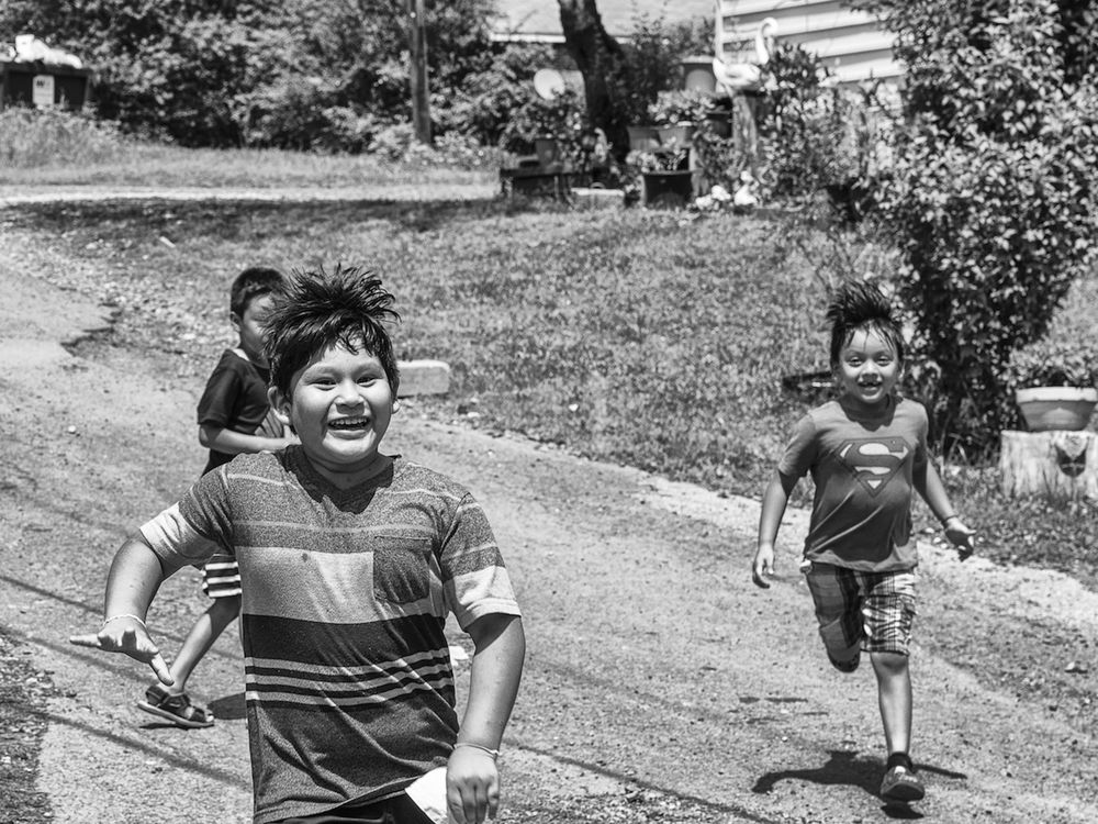 I was volunteering as a photographer with El Centro Hispano, a local non-profit in central North Carolina serving the Latino community. This was during the height of the COVID pandemic when many immigrant communities were having difficulty getting food. This image was made at a rural trailer park with a large Latino population. We were delivering a truckload of donated food and these children were running down the hill to join in the excitement.