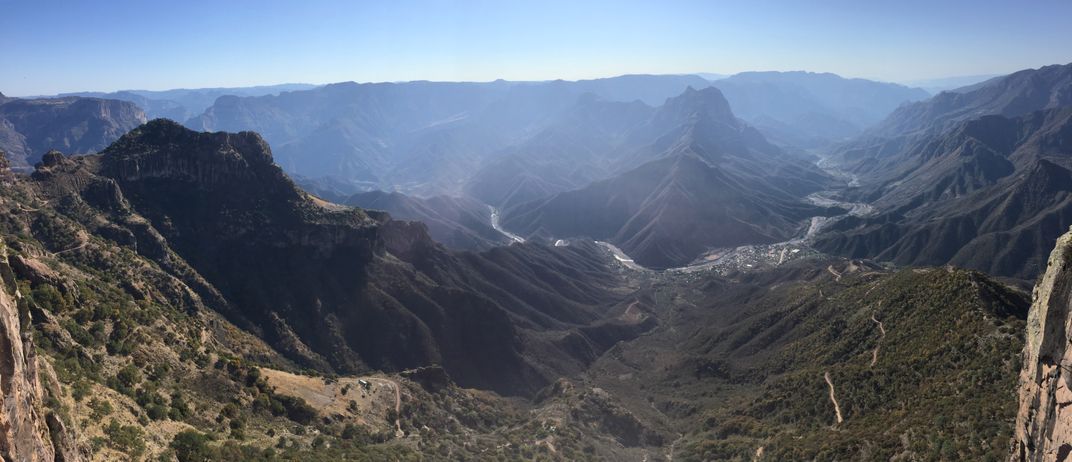 This is an astonishing view of the small village of Urique, Mexico, located in the deepest point of the Barrancas del Cobre canyon. The village is reachable by a bus which departures from the Bahuichivo station of the El Chepe railroad and descends approximately 2.000 meters in a 40 kilometers unpaved road. It is one of the most scenic roads of the world.