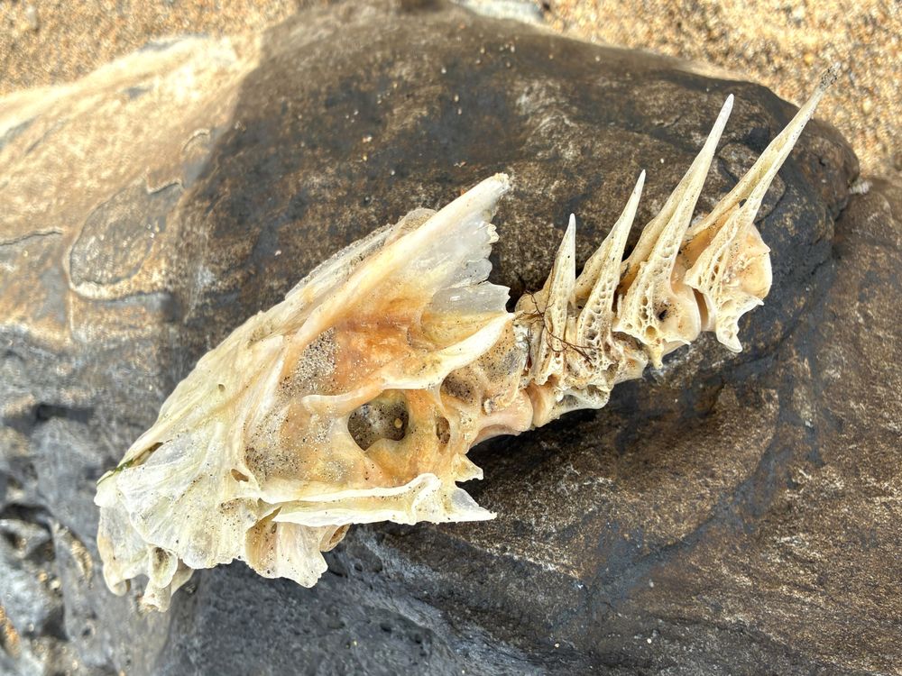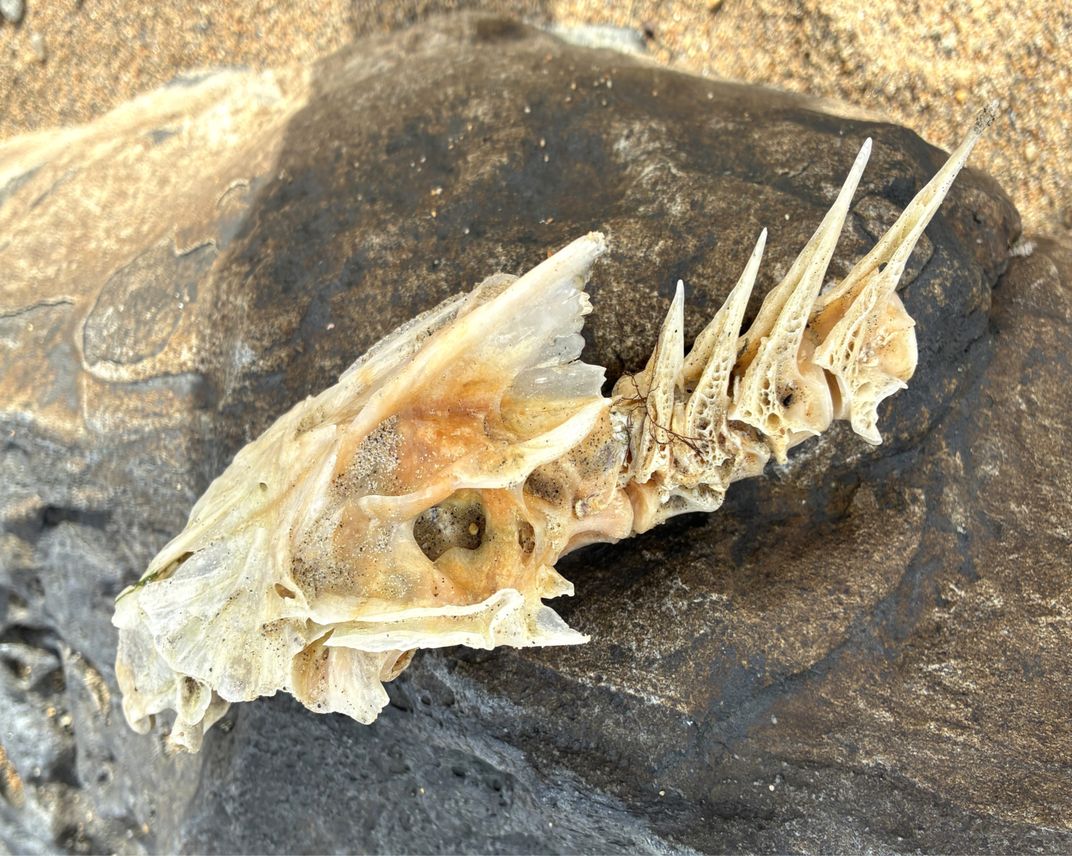 Fish skeleton found while beachcombing in Rhode Island following Hurricane Erin