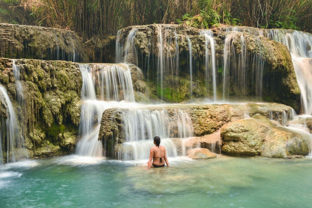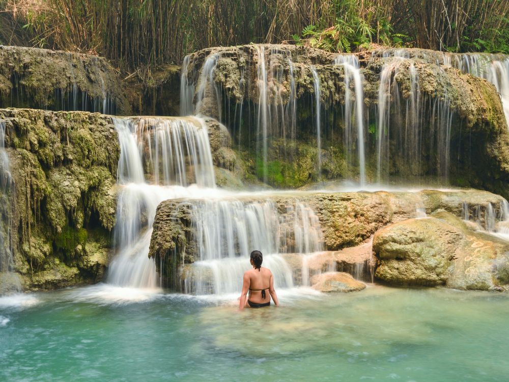 Kuang Si is a multi-tiered waterfall fuelling a stream that forges a turquoise passageway through the Laotian rainforest. It is popular with locals and tourists alike for cool swims on hot days.