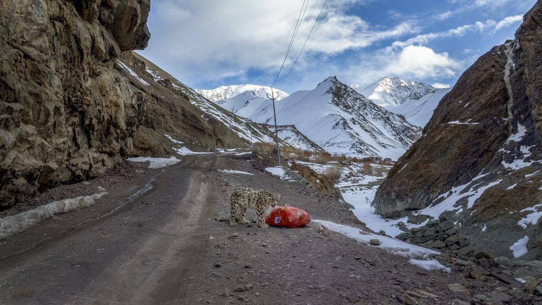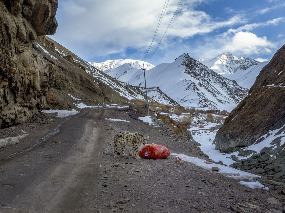 In the high altitudes of the Himalayas, where silence clings to the wind and the mountains breathe ancient secrets, one elusive predator reigns-the "Ghost of the Mountain," the snow leopard, known to the locals as Shan. During the early months of 2024, while on a filming assignment in Ladakh, India, I witnessed a rare spectacle-an intimate glimpse into the fierce struggle for survival that shapes life at these heights. As the sun dipped behind the jagged ridgelines, a young male snow leopard emerged from the crags. Driven by hunger and desperation, he fixed his unblinking gaze upon a lone stray dog below. With fluid grace, the cat descended the rugged slope, shadowing the dog with the precision of a master hunter. In a sudden burst of force, predator and prey clashed. The chase surged up a steep hillside, only to twist into chaos as both animals lost their footing. They tumbled violently down the scree, a blur of fur, dust, and instinct. When the world stilled, both were injured-yet the dog, fueled by fear, managed to escape and dashed toward a nearby village. The snow leopard, shaken and defeated, rose slowly. His spirit seemed momentarily dimmed, his body weakened by the fall and the failed hunt. Before retreating into the vast solitude of the mountains, he paused at a nearby garbage dump, searching-almost pleading-for a scrap of nourishment. It was a moment both humbling and heartbreaking: the Ghost of the Mountain brought down not by an enemy, but by hunger.