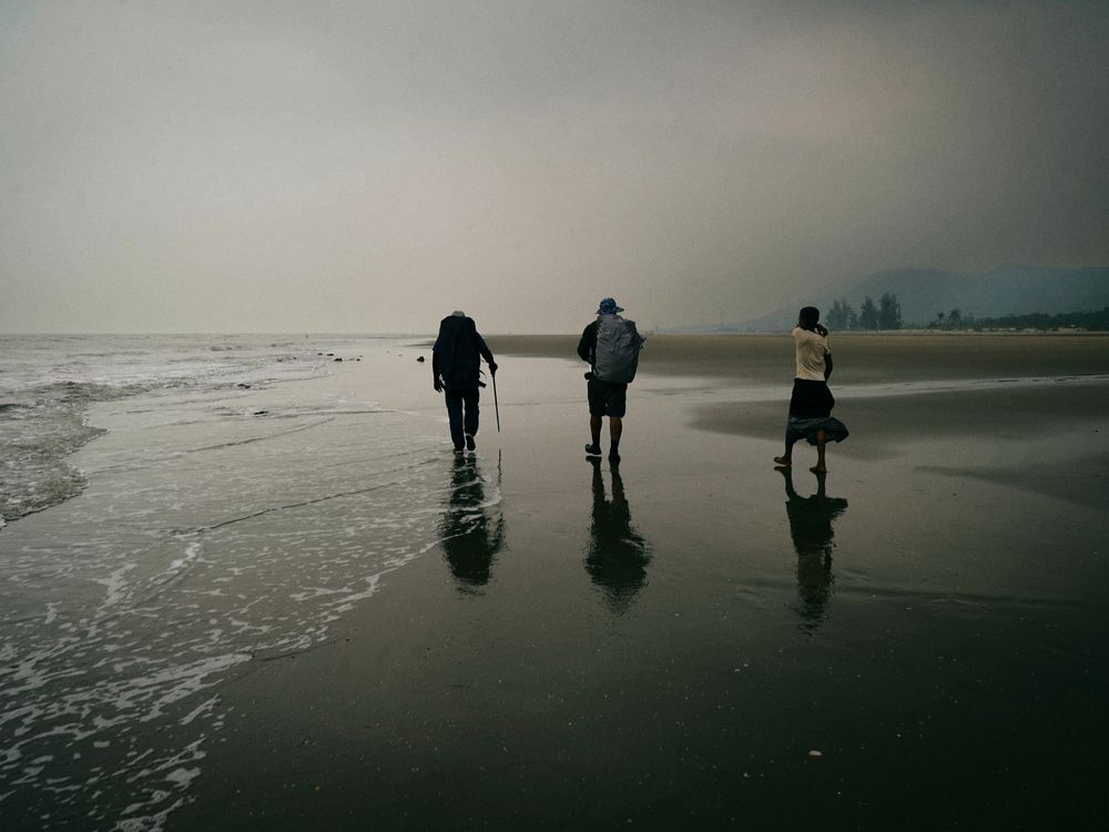 Teknaf, located in Bangladesh, is home to one of the world's longest beaches, stretching nearly 100 kilometers from Teknaf to Cox's Bazar. We began our journey to explore this vast shoreline but managed to walk only 30 kilometers. Along the way, we were awestruck by the breathtaking and surreal landscapes of Bangladesh—views we had never experienced before .At one point, I noticed two travelers walking along the shore. It appeared as though they were walking on a mirrored landscape, reflecting the sky and ocean in perfect harmony.
