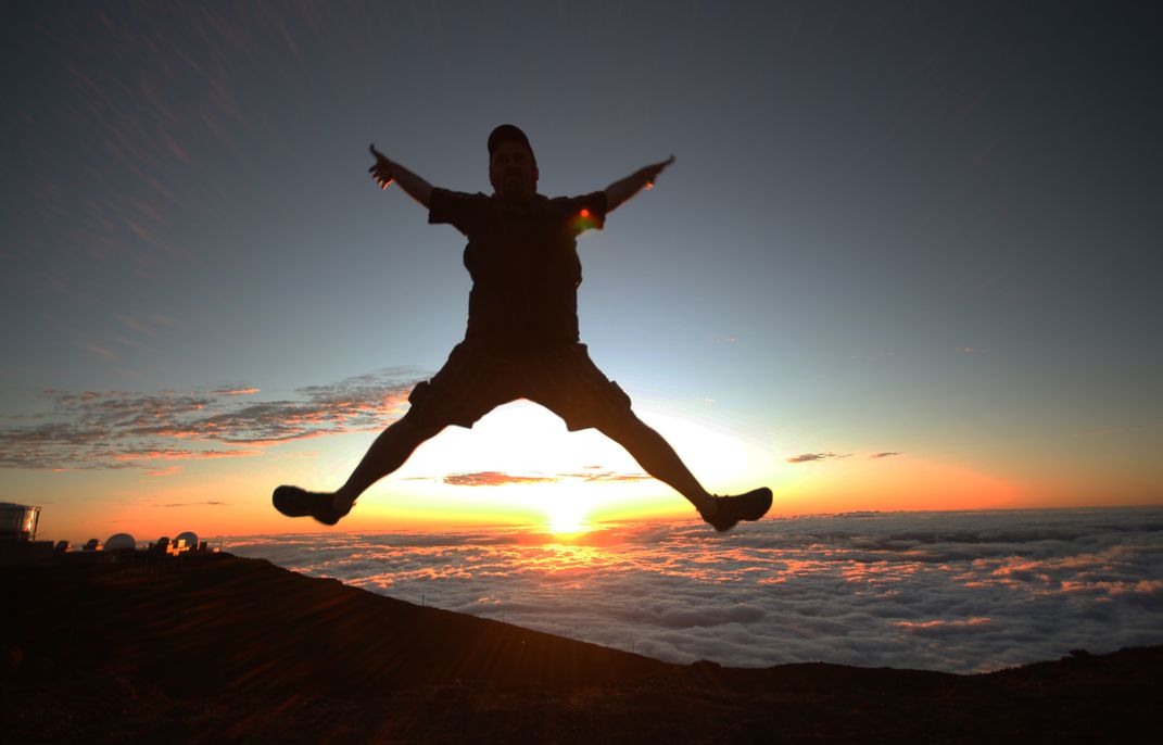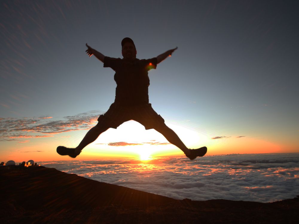 While watching the sunset from the top of Haleakala on Maui, Hawai'i, I decided it was a perfect scene to jump above the sunset at 10,000 feet.