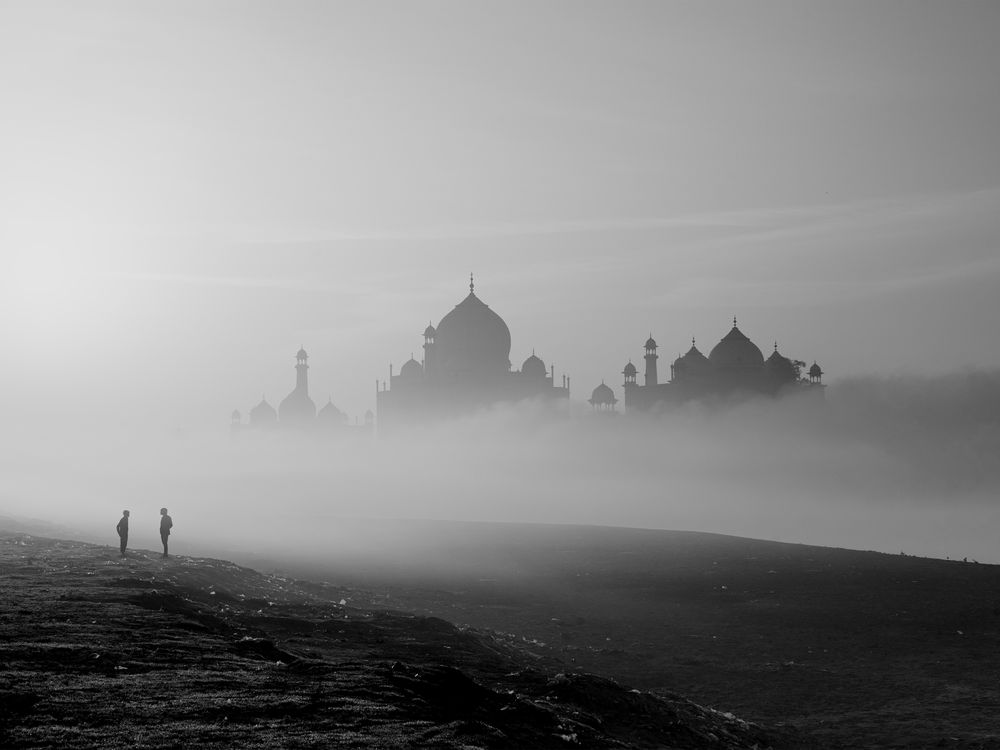Whispers of my heart Silence... In the early morning light, peoples walk along the banks of the Yamuna River, with the majestic Taj Mahal towering in the background. The gentle rays of the rising sun cast soft shadows, rendering the monument in striking black and white tones that heighten its timeless allure. The simplicity of the scene, with its minimalist composition and carefully arranged lighting, creates a serene atmosphere that speaks to the soul. Dwarfed by the grandeur of the Taj Mahal, move quietly, their presence adding a subtle touch of life to the still and tranquil setting. The reflection of the monument in the calm waters of the river further enhances the sense of peace and stillness. This image, titled "Whispers of Silence" invites viewers to pause and absorb the profound calm that emanates from the scene, offering a moment of respite and reflection in a world that often moves too fast. It is a visual poem of serenity and timeless beauty.