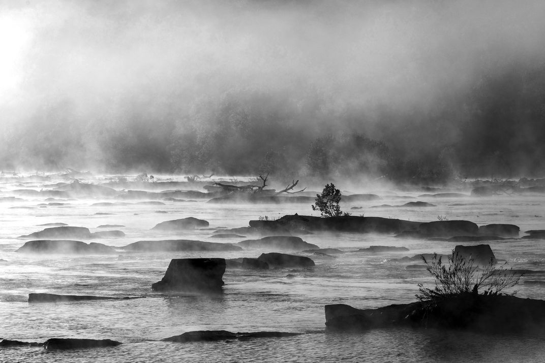 Taken on an early fall morning at Harpers Ferry, where cool air and warm water create a haunting veil of mist over the river.