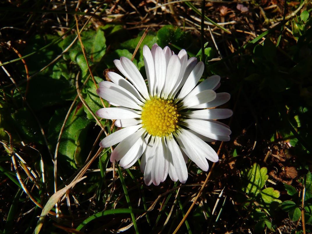 During a walk through Berlin alongside the Dutch embassy I notice this daisy blooming as one of the first this year.
