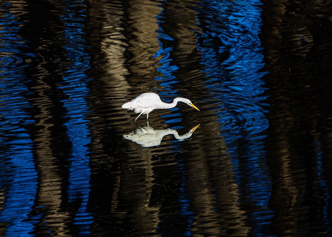 This is the First Shot of the White Egret prior to the Previous Submission with Copper color and OFF-color Blue in the Water. Same pond but a different location.