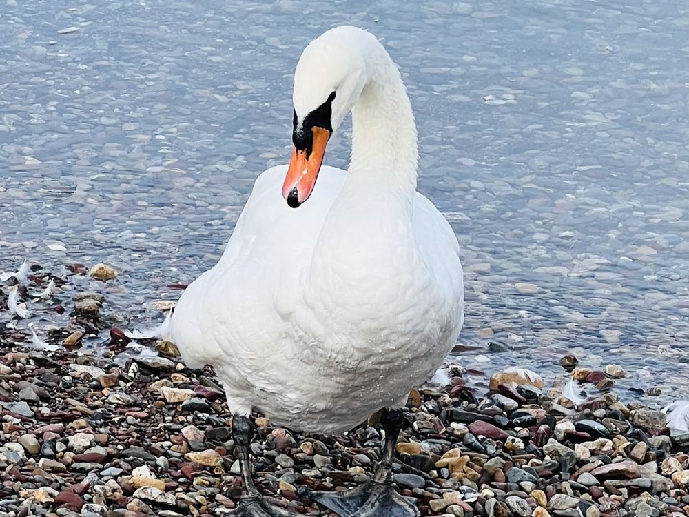 In September of 2023 we rented a cottage on the water in Wallenstadt, Switzerland. Swans hung around the property and captivated by their beauty, I snapped a photo of this swan. Swans are such beautiful creatures and this one was no different.