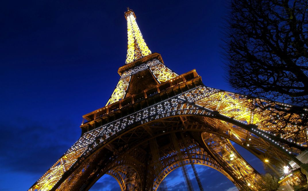 Wide angle of the Eiffel Tower at sunset. The longer exposure managed to capture the entire light display of the tower that evening.