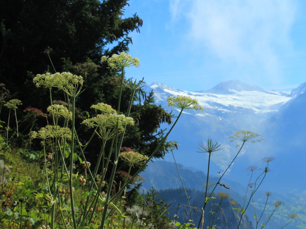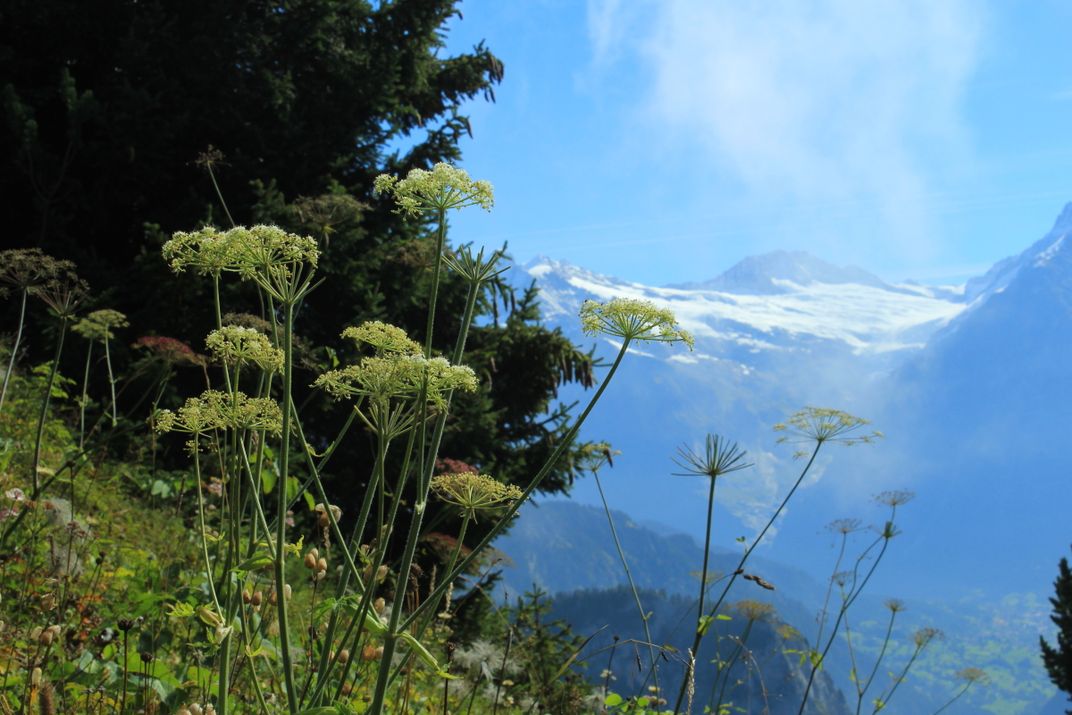 Simple wildflowers holding their own against the glory of Swiss Alps