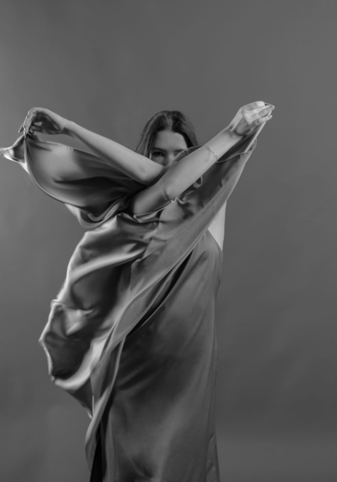 Artistic portrait with silk and wind forms everchanging aesthetic geometry of every movement. The concept idea is make portrait photography art not static but every changing like emotions and moments of life itself.