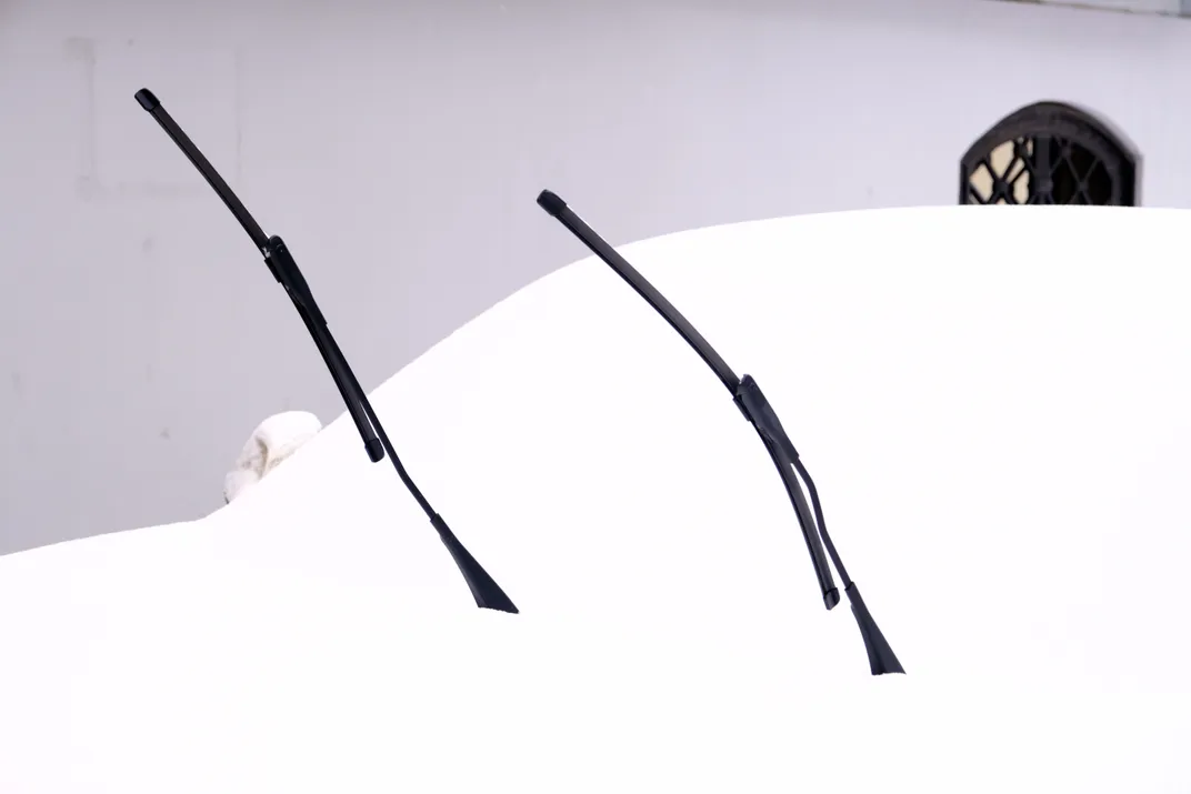 Windscreen wipers protected from freezing to the glass in the cold, snowy winter