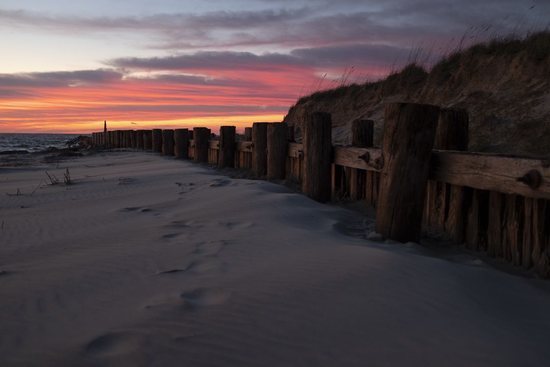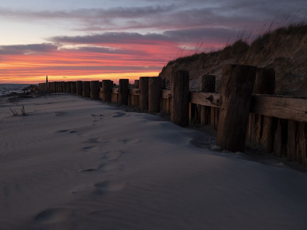 The first glimpse of morning light as the sun begins to come over the horizon on Folly Beach