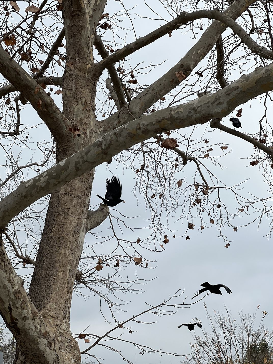 City life has its own kind of wildlife. In Southern California, we have squirrels, opossums, coyotes, and all kinds of wonderful birds. Walking through my Santa Monica neighborhood, I stopped to watch some very loud ravens squawk it out. Crows and ravens are a rowdy bunch, and I suspect the hoopla centered on the nut in the victor's mouth.