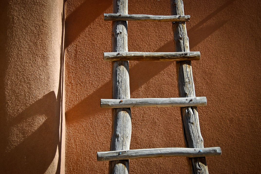 Woden ladder against adobe wall in New Mexico.