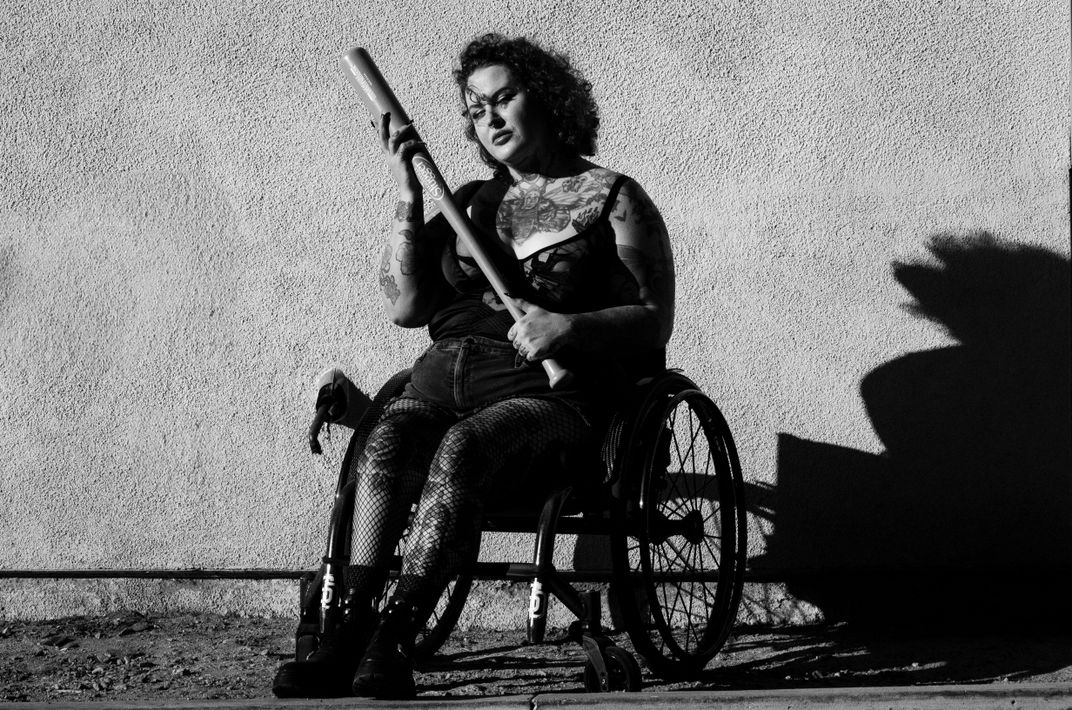 A woman sits in a wheelchair with a bat in her hand, ready to fight for everything that she believes in. She isn't a symbol. Moreso, she's a warning that being disabled doesn't mean being defenseless.