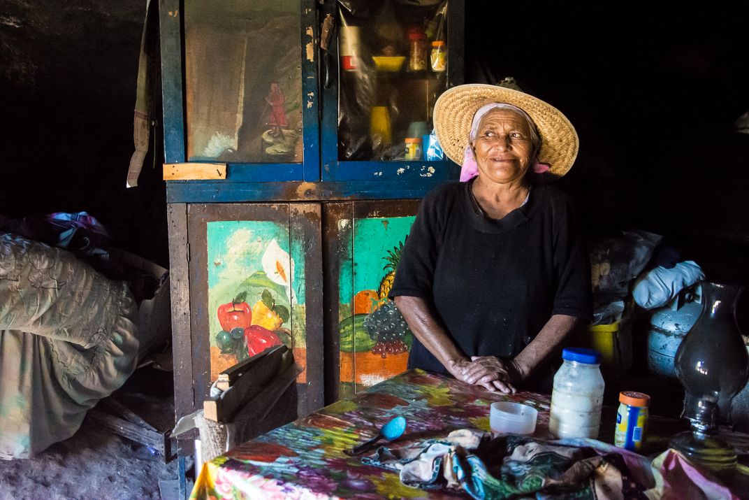 An old woman is finishing her breakfast in her home - a cave. She is member of indigenous group called Tarahumara or Raramuri that lives in a hostile environment of highlands of the mexican state Chihuahua. Many of Tarahumaras still live in caves.