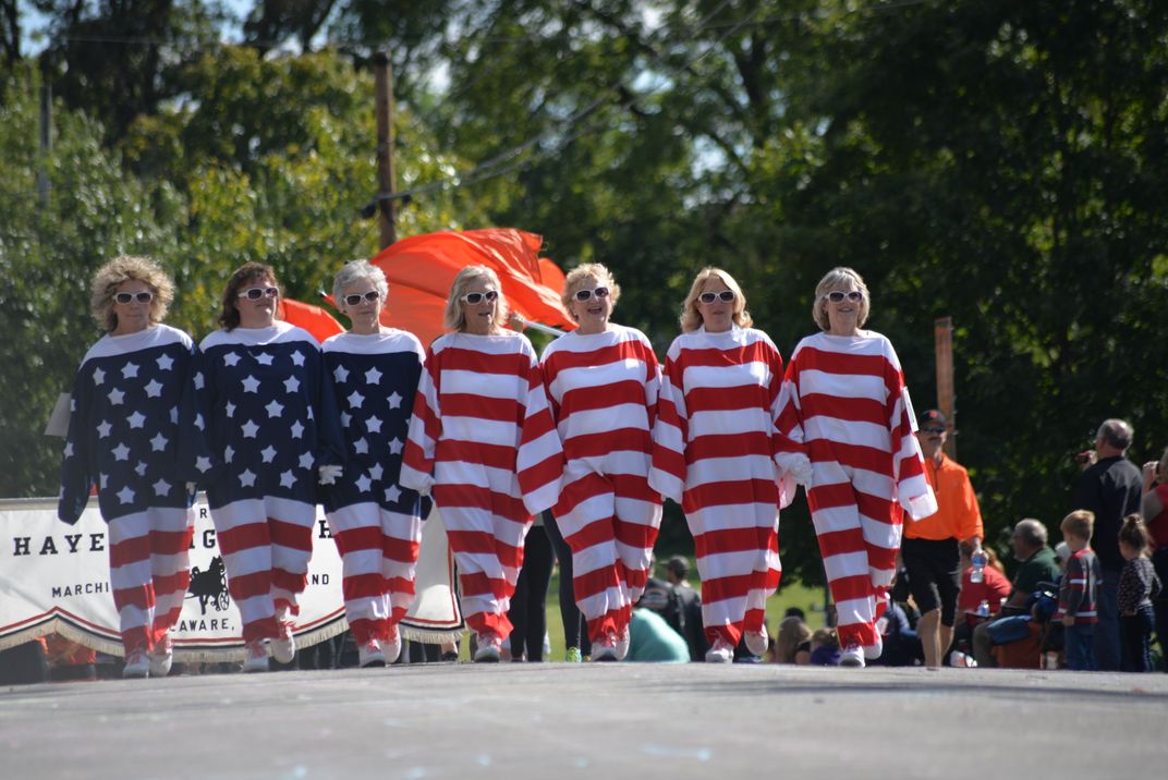This group of Ladies were in the Delaware "All Horse Parade" making a US Flag.