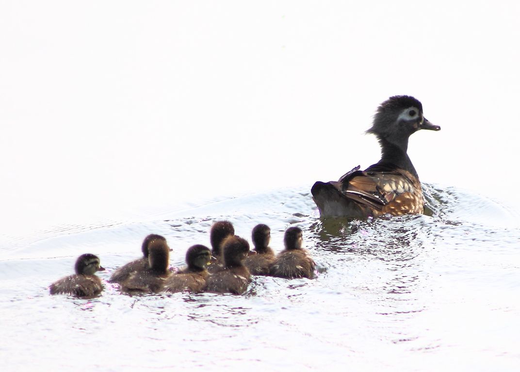 Wood ducks and merganzers sometimes share nesting boxes, resulting in a mixture of offspring.