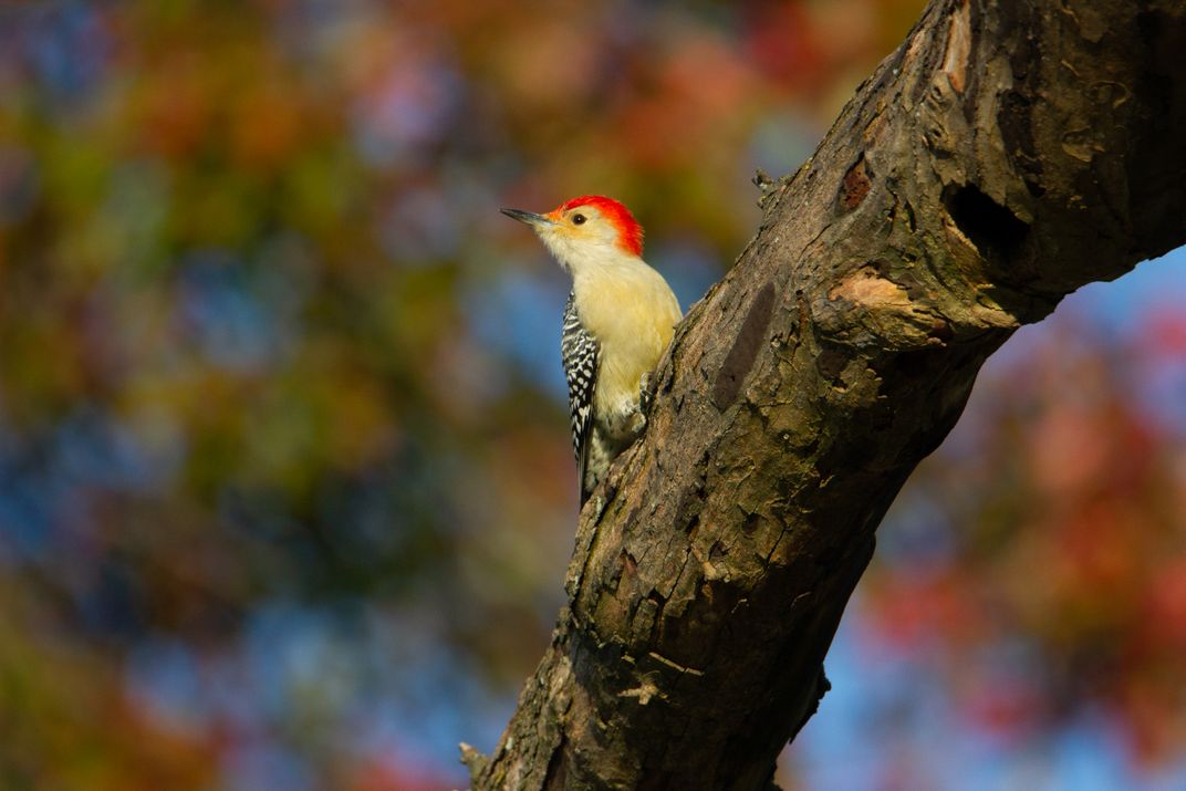 I captured this shot pretty close to the subject with my telephoto lens. This red bellied woodpecker was busy pecking the wood and did not pay any attention to me photographing it. Captured this at Patterson Park.