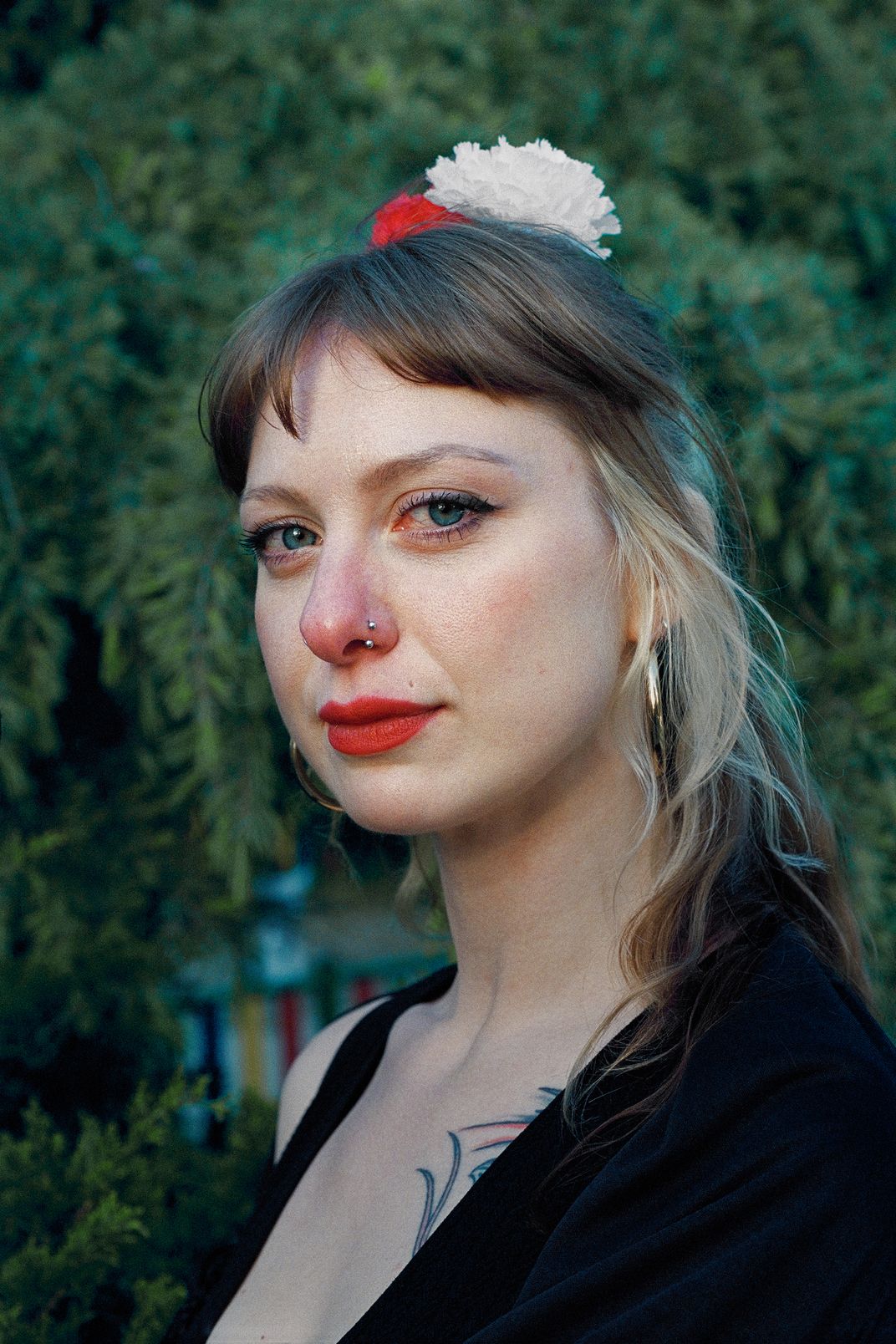 The combination of subcultural aesthetics and local tradition produces a striking contrast that questions ideasof authenticity. Xenia blends skinhead symbols with traditional Madrid costumes, generating a hybrid identity that unsettles expectations.