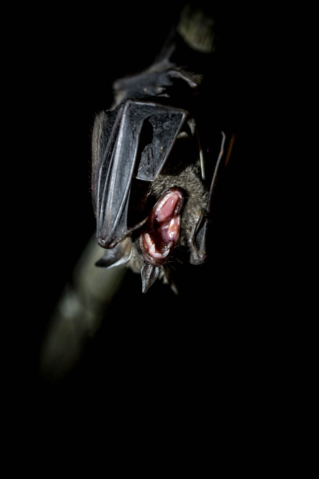 I was working to document the bats kept at The Bat Jungle in Monte Verde, Costa Rica. My camera woke this bat from its slumber.