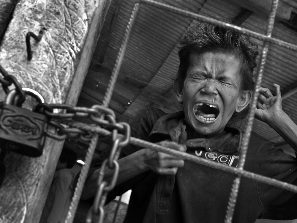 Yayasan Galuh Rehabilitation Center is and impoverished mental health facility based in Bekasi, Indonesia that hosts over 250 patients. A woman known as Yati loses composure near the central cooking area of the foundation. Most come from poor families no
