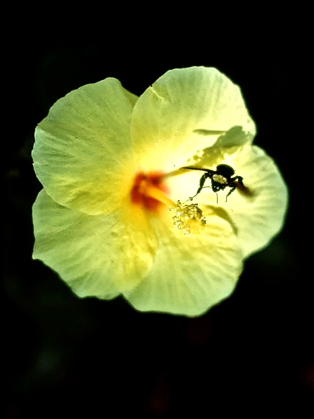 Yellow Hibiscus with surprise Bee!