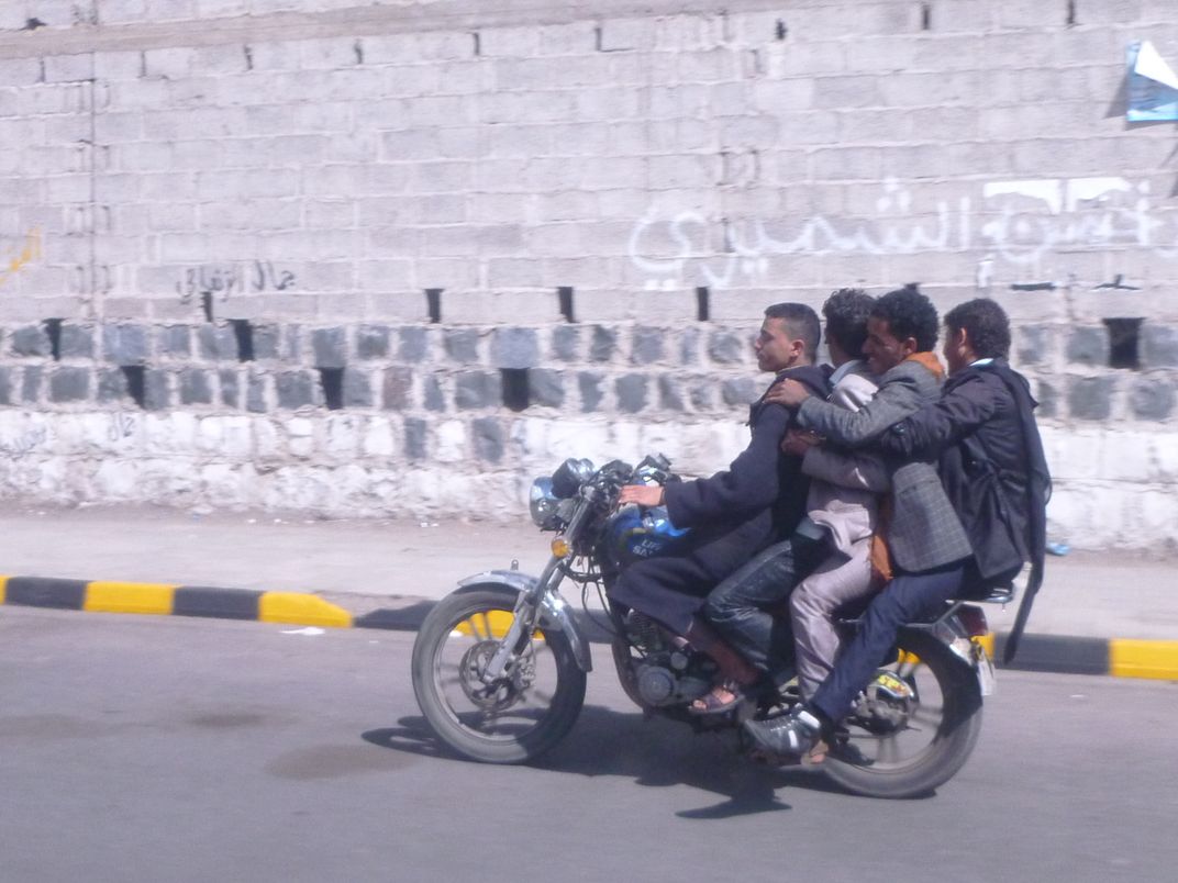 I was lucky to capture this photo while in a moving truck in Sana'a, Yemen. Somehow the amazing men of Yemen figured out how to ride a motorcycle four at a time. It seems to be a normal occurrence as this was one of many multi person motorcycle rides!