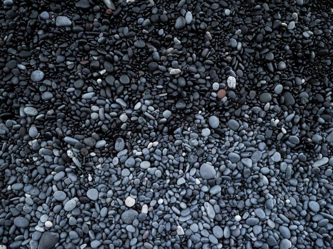 A grouping of dry vs. wet rocks on a beach in Iceland