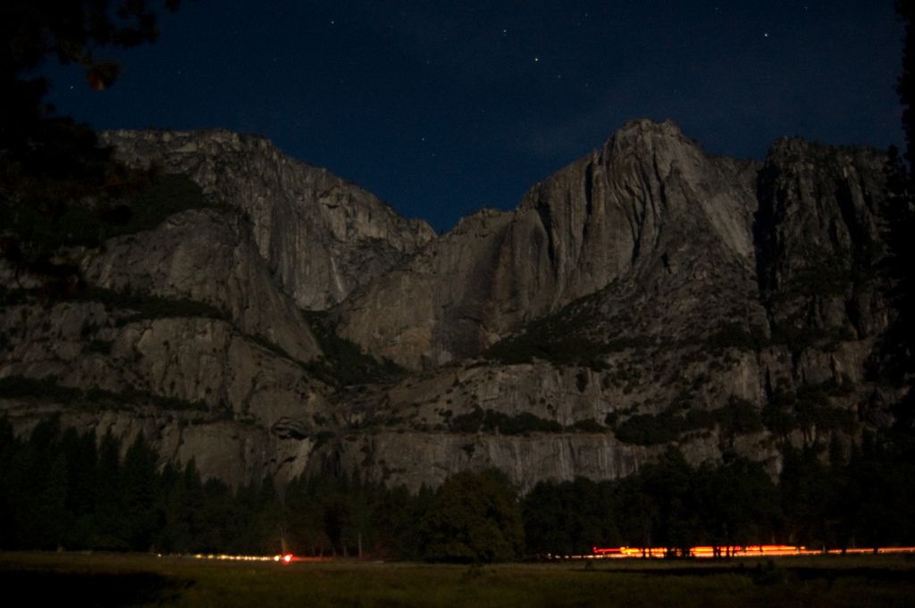 Yosemite Valley, photo taken on a full moon night at Yosemite National Park, CA