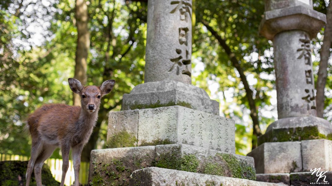 While walking through the time-travel city that is Nara, Japan, you can't help but fall in love with the natural beauty and historical relics. Also, one quickly realizes that deer own the town--and they tend to pose for awesome pictures, like this young fella here.