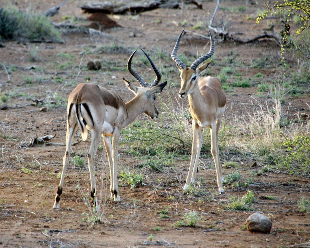 Young male impalas were practicing how to fight near dusk one evening in Kruger National Park in South Africa